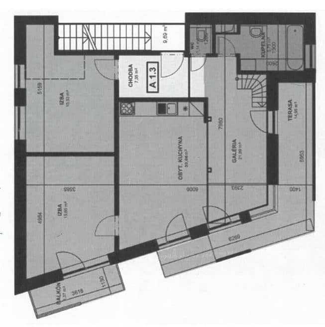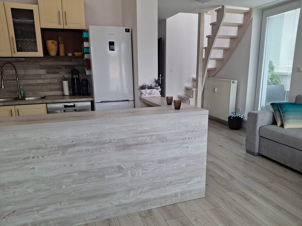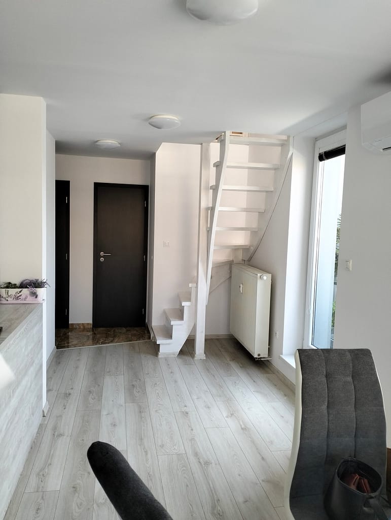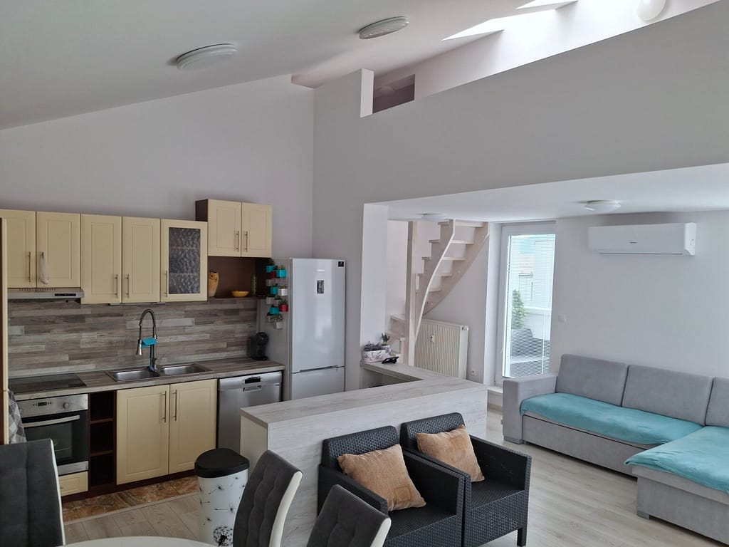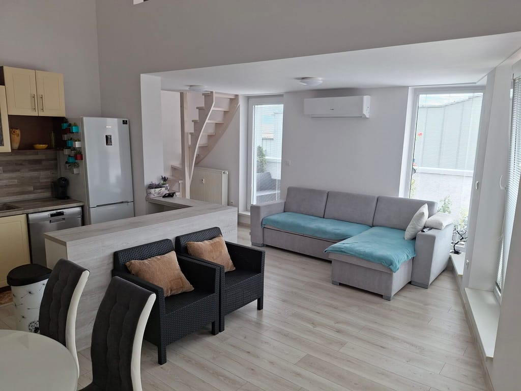Byt sa nachádza na 2. poschodí bytového domu sa je čiastočne prerobený. Vďaka mezonetovému riešeniu pôsobí veľmi otvorene a poskytuje dostatok súkromia pre každého člena domácnosti.